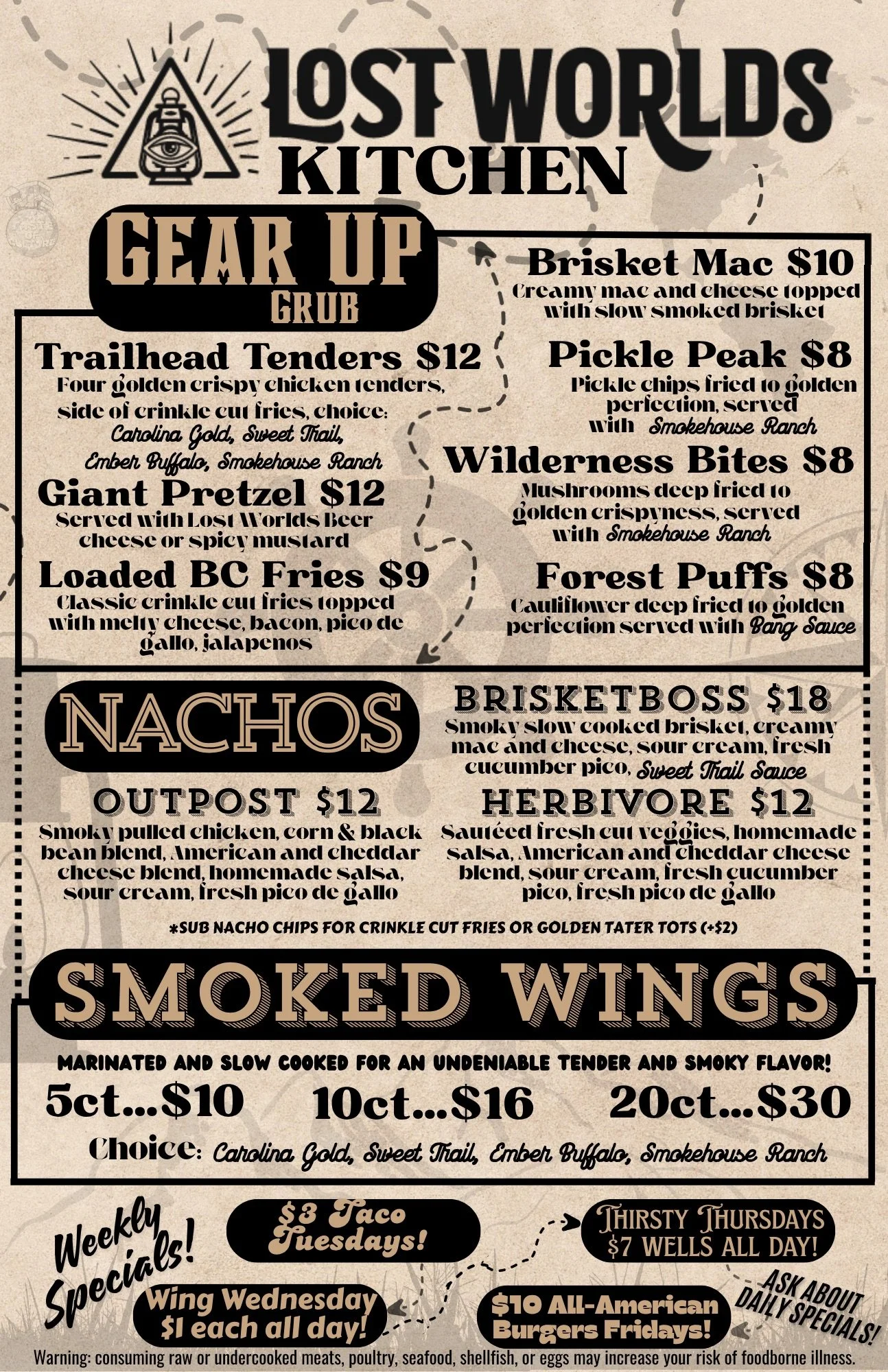 You asked, and we delivered. Lost Worlds Kitchen is now serving a full menu in Cornelius — from stacked bites to shareable favorites, all made for pairing with your next pour.